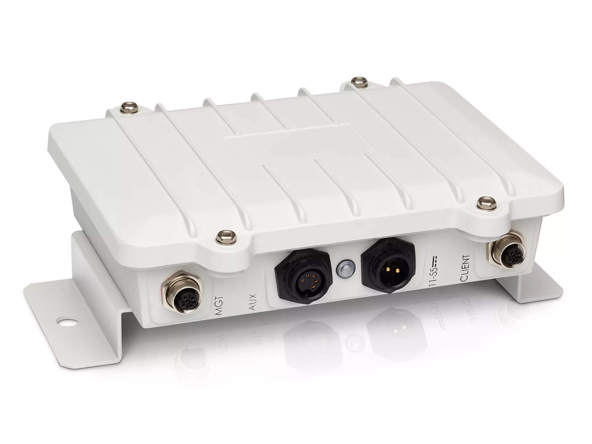 - Aux port with industrial-type locking connector, 7-pin, female, for remote network status indicator and serial GPS input